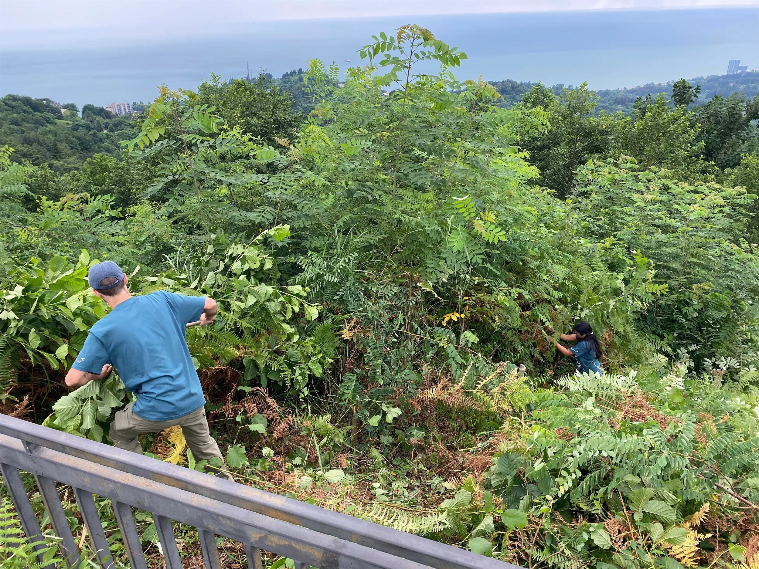 ‘Gardening’ around station to ensure we have good visibility of the bottom of the valleys. It is incredible how fast vegetation grows on the edge of the Colchic ‘Rain forest’. Photo by Elien Hoekstra.