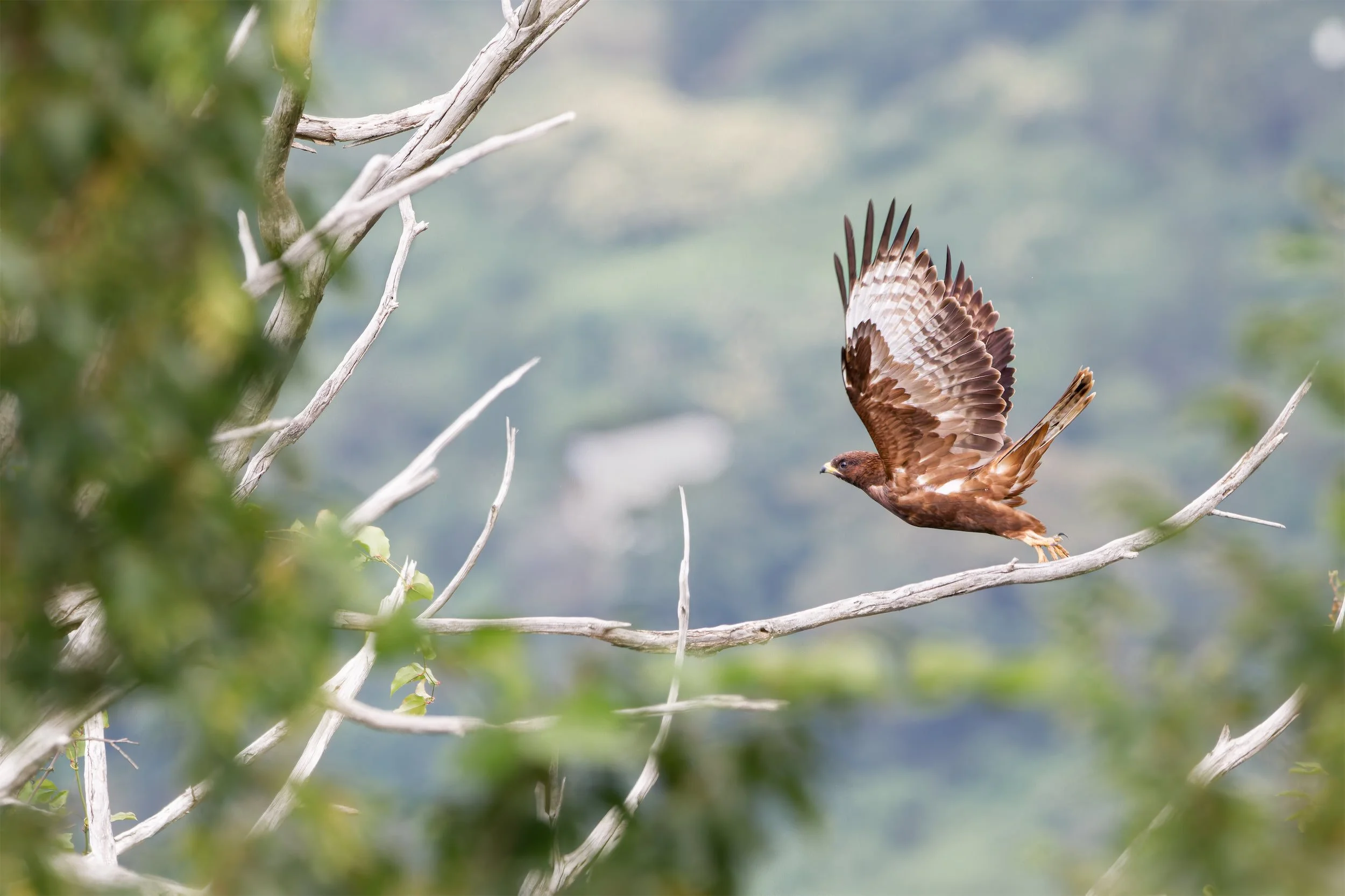 A juvenile Honey Buzzard taking off from Station 2’s favorite perch. Photo by Eduardo Campos Wals.